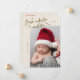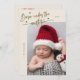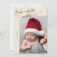 Cartão de nascimento elegante e moderno do tema do Natal, com um texto manuscrito escrito que diz "Nascer sob a alface". Este é um cartão de anúncio de nascimento para as férias! Adicione suas fotos, estatísticas de natalidade e uma mensagem! O fundo é creme.