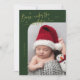 Cartão de nascimento elegante e moderno do tema do Natal, com um texto manuscrito escrito que diz "Nascer sob a alface". Este é um cartão de anúncio de nascimento para as férias! Adicione suas fotos, estatísticas de natalidade e uma mensagem! O fundo é verde.