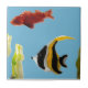 Peixes que nadam no mar entre a alga, com um peixe do anjo no centro. De minha pintura de vidro original. Oleiro de Copyright Annabel