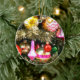 Imagem original de Enfeites de natal de vidro colorido com tinsel garland em uma árvore.