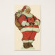 Cartões divertidos para usar como etiquetas de presentes nos feriados. Ou altere o texto e os detalhes para criar um cartão de visita exclusivo, personalizado e personalizado para suas necessidades específicas. Clique no botão "personalizar" para acessar todas as ferramentas de design para alterar a cor do plano de fundo ou o estilo ou cor da fonte. Muitas fontes a escolher!! Ilustração Vintage Imagem de Natal Feliz com um carregando de Papai Noel alegre com cheio de brinquedos e bonecas. Morte vitoriana cortada.