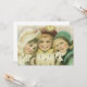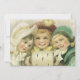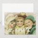 Ilustração antiga imagem de Natal Feliz vitoriano com três meninas sorrindo e felizes. Estas amigas para sempre ou irmãs estão vestindo roupas de inverno com chapéus e luvas. Amizade duradoura.