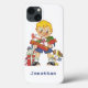Ilustração antiga em estilo cartoon de imagem de Natal feliz, apresentando uma criança loira feliz e fofa. Ele está carregando presentes embrulhados com seu adorável cachorrinho ao lado. Um recorte antigo vitoriano. Saudações da temporada!