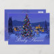 Natal, convites de chá de panela de férias. Elegante e clássico, perfeito para suas festas de férias. Um mundo azul de neve com árvores de Natal coloridas e casas de iluminação familiar, árvores verdes de inverno e boneco de neve, uma imagem divina e pacífica de Natal colocará qualquer um no clima de Natal, e trará os sentimentos felizes e quentes de férias.