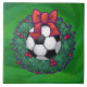 Bola de Futebol Festivo na Festa de Natal sobre ornamentos verdes, presentes e decorações divertidas apresentam nossa arte original de uma bola de futebol branca e preta uma coroa verde oca com um arco vermelho brilhante sobre um fundo verde com nossa textura de pincel seco. Esta divertida bola de esporte decorada em feriado é perfeita para qualquer um que ama esportes e feriados. Tenha um Natal divertido e desportivo. Designs personalizados disponíveis.