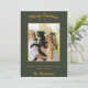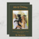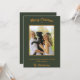 Capture a magia da temporada de festas com este cartão de Natal plano, maravilhosamente personalizado, que mostra sua foto favorita de família com uma estrutura de ouro em um fundo verde de floresta escura. Todo o texto é um ouro profundo. Os ricos verdes florestais e matizes ouros criam uma atmosfera quente e nostálgica. "Feliz Natal" é elegantemente arquitetado no topo enquanto no fundo está uma linha de nome personalizável, adicionando um toque pessoal. Estes estão em uma fonte elegante. A data do ano e a mensagem: "Enviando desejos especiais para uma estação feliz de férias" estão em uma fonte simples na mesma cor dourada. Os fundos para a frente e para trás da carta são ambos o verde florestal profundo e rico, fazer-o perfeito para enviar alegria de férias para os entes queridos. Este elegante cartão de Natal / feriado é ideal para espalhar saudações sinceras e personalizadas no Natal e no feriado. #PersonalisedChristmasCards #CustomHolidayCards #CustomHolidayCards #NatalSaudações #HolidayCardDesigns #UniqueChristmasCards #greenandgold #familiarfotoChristmasCards