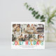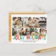Saudações da Época ORÇAMENTAL Personalizaram quatro Feriados Feriados Feriados Fotográficos coloridos e divertidos Cartão de Natal de Ricaso - desenhado com um texto tipográfico ousado com fotografias modelo para a frente e um padrão riscado para o fundo