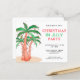 Este convite de festas de Natal em julho é decorado com palmeiras de aquarelas com luzes e bolhas. Facilmente personalizável. Use a Ferramenta Design para alterar o tamanho, o estilo ou a cor do texto. Porque nós criamos a nossa trabalho de arte, você não encontrará esta imagem exata de outros designers. Original Watercolor © Michele Davies.