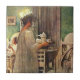 O artista sueco Carl Larsson pintou esta cena sueco tradicional do café e do pequeno almoço os mais novos do serviço da filha no dia de Lucia, o 13 de dezembro. Veste um vestido longo e tem uma coroa das velas em sua cabeça. Presentes escandinavos do Natal para a apreciar durante os feriados.