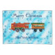 Um modelo alemão de máquina a vapor e de carro de passageiros da escala Marklin O repropositado, por volta de 1940. O motor recebeu digitalmente um novo esquema de cores para o Natal, mantendo o seu caráter. A leitura do GText, "Feliz Natal" também aparece. Adicione seu próprio texto adicional.