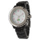 Aqui vocês podem admirar um dos desenhos de Natal, eu chamo, "FrankenCheese de Natal", FrankenCheese vestido de Papai noel, com uma árvore de Natal decorada, o texto diz, "Feliz Natal". Agora você pode pedir, "Natal FrankenCheese", neste relógio de esmalte preto de rocha feminino para desejar a alguém um Feliz Natal."