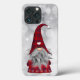 Gnomo de Natal doce num terno de xadrez vermelho num fundo cintilante prateado