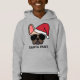 Junte-se à diversão festiva com este lindo capuz de Natal. A design apresenta um buldogue francês de cor clara vestindo um chapéu vermelho de Papai Noel e óculos de sol de aviador com a redação "Papais noeis Patas" impressa por baixo.
