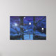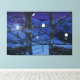 Uma noite de inverno, olhando por cima de um portão flanqueado por duas árvores em uma cobertura de neve entre colinas rochosas, cheias de pequenas fazendas, sebes e muros de pedra. Um brilho quente brilha de muitas janelas, luzes de Natal brilham sobre árvores e cercas, e uma estrela de Natal vigia do telhado de uma casa de manor, tudo sob os raios de uma lua de cheio.