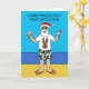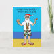 Um desenho do Pai Natal parado em uma praia em chinelos, tons e shorts holly padronizados. As palavras "Natal em Convite de festas de julho" acompanham a imagem.