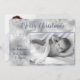Duas das suas fotografias especiais ocupam o palco central neste cartão de feriado plano moderno. A foto da frente é emoldurada com um elegante padrão de flocos de neve prateada, e o texto acima em azul de cinza diz Feliz Natal. Seu texto de assinatura personalizado está em azul de cinza correspondente no lado esquerdo da fotografia. A parte traseira da placa tem outro campo de modelo de foto, com seu texto na cinza do lado direito. Simples beleza que deixa suas fotografias brilharem!