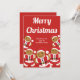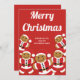 Um cartão de Natal com biscoitos sorridentes e pão de gengibre em ternos de Papai noel. Mande alegria de Natal para seus entes queridos com este cartão de biscoito de Natal fofo. Papais noeis Gingercake Cartão de Natal de Natal Docetsham Comida Art | ©Melissa Patton — Artista/Ilustrator