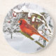 O vermelho do pássaro cardinal com a neve branca é uma imagem perfeita para a época natalícia. As bagas vermelhas pequenas terminam a imagem com um respingo da cor nesta porta copos do Natal.