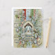 The design features a vintage-inspired background of distressed paper, sheet music, and rustic stamps, giving it an authentic aged feel. The centerpiece is a snowy Nativity scene framed by a gorgeous, elaborate wreath.