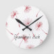 Lindos dandélions de fuschia. Design Whimsical. Texto personalizável no relógio. Por exemplo, se você quiser colocar o relógio no quarto de uma criança, você pode mudar o nome. Ou mude para outro nome para o relógio da cozinha. As possibilidades são infinitas!