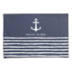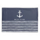Este caso único de travesseiro náutico com faixas marinho azul e branca, âncora e modelo foi concebido para a cama de iate na moda. Digite seu nome de barco ou um nome de família para personalizá-lo.