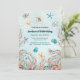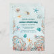 Um tema de aniversário doce com fundo aquático com conchas, peixes-estrela e algas coloridas. Você pode personalizar este convite com seus detalhes.
