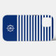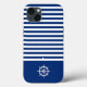 Listras náuticas no topo deste design com uma ilustração da roda de um pequeno navio abaixo.