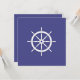 Design náutico da ilustração da roda de um navio em detalhes de cor azul-branca e azul-escura sobre fundo azul.