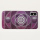 Um design de espirais prateadas, como vidro manchado, e tons de ameixa, sobre um pano de fundo repetitivo de fractais espirais. As espirais prateadas convertem-se numa rosa prateada, com gemas redondas para sotaques.