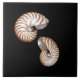 azulejo cerâmico de 6" x 6", fundo preto com 2 conchas náuseas lindas.