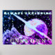 Um planeta de alienígena tipo Saturno, céu estrelado, superfície robusta de seu satélite e figura solitário em uma rocha.