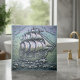 Chame a atenção com este impressionante azulejo de faux-baixo-relevo apresentando um majestoso galeão totalmente equipado navegando por ondas dramáticas e nuvens turbulentas. O detalhe do design evoca gravações marítimas clássicas ou placas de metal esculpidas. O azulejo é finalizado com o brilho iridescente característico, dando às velas e ao casco do navio um brilho luminoso e perolado que muda entre prata gelada, aqua pálido e rosa suave. Esta peça poderosa e sofisticada é ideal para criar um ponto focal dramático em bibliotecas, salas de estar, bares ou espaços temáticos náuticos de luxo. Procure por ID1223 para ver outros elementos marinhos nesta série metálica dramática. Nota: o design pode conter conteúdo gerado.