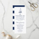 Adicione seus detalhes para criar um cartão de programa de casamento único e clássico, mas moderno, em estilo náutico. Este design apresenta uma ilustração náutica vintage em veleiro seguida dos seus detalhes abaixo dele. No verso há uma série de faixas marinhos e brancas para completar a aparência. Todos os elementos deste item são ajustáveis utilizando a função de personalização. Aproveite criar e fazer-o seu.