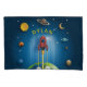 Adicione um nome a esta estante de foguete, apresentando um foguete que explora as nuvens cercadas pelo sol, lua, estrelas e planetas.