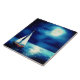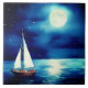 Azulejo cerâmico ilustrando um veleiro fluindo pacificamente num mar tranquilo e iluminado, cercado por um céu noturno estrelado. A lua de cheio lança uma reflexão suave sobre a água, criando uma cena serena e tranquila.