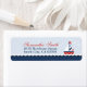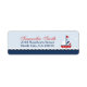 Embarcação de vela no mar com gaivotas voando no rótulo do endereço temático náutico.