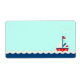 Navio de vela no mar com gaivotas voando nome de etiqueta temático náutico.