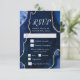 Complete your event stationery with this elegant RSVP card featuring a navy blue agate marble design accented with luxurious silver details. The bold geode-inspired background creates a dramatic and sophisticated look, perfect for weddings, birthdays, formal celebrations, or glamorous evening events. This RSVP card includes dedicated sections for guest responses, number attending, and meal selection, making it easy to gather all the details for your event. The clean, modern typography keeps information clear and easy to read while complementing the rich agate texture. Easily personalize all text to suit your event and coordinate with matching stationery.
