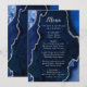 Display your meal selections in style with this elegant wedding menu featuring a navy blue agate marble design accented with silver details. The geode-inspired background creates a sophisticated look, perfect for fall and winter weddings, formal celebrations, or evening events. Designed to coordinate with your wedding stationery suite, this menu is ideal for presenting courses clearly while adding a luxurious touch to your table setting. The clean typography ensures readability while complementing the agate texture. Easily personalize all text to suit your menu and event details, making it a beautiful choice not only for weddings but also for engagement parties, anniversaries, and other formal occasions.