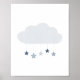 Navy Blue Cloud and Stars Boy Nursery Poster