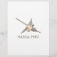 Uma versão de jornal da famosa Nazca Lines Hummingbird geoglyph. Design em laranja, preto e branco. Texto: Nazca, Peru.