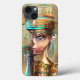 Retrato digital abstrato da deusa egípcia, Rainha Nefertiti, em dourados e verdes. Wombo Dream AI e colaboração de artistas.