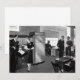 Ilustração vintage em preto e branco de uma cena de escritório de negócios apresentando um escritório profissional típico com homens de negócios, mulheres de negócios, homens, mulheres e trabalhadores administrativos realizando suas tarefas diárias rotineiras de papelada e administrativas em suas mesas. Máquinas de escrever manuais, impressoras e máquinas de fax estão em uso.