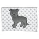 O desenho original de Destei de um casaco preto bonito de cor inglesa Staffordshire Bull Terrier / Staffie. O fundo tem um padrão de pegadas de cinza.
