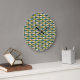 Um Relógio de Parede na moda Round, com um padrão decorativo 'tribal' em Verde e Teal, esboçado em Preto, em um Fundo de Creme. Parte da coleção Posh & Painterly "Jungle Drums".