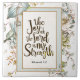 Um azulejo de cerâmica de aspas inspiracional retrata um design de aquarela floral de jardim rústico com flores brancas, eucalipto e folhas azuis. Ele apresenta uma Bíblia encorajadora Verse Nehemiah 8:10, "A alegria do senhor é minha força."_