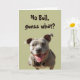 A mensagem na frente deste cartão de melhor amigo diz, "Não Bull, adivinha?" Dentro diz, "Você é meu melhor amigo!" Esta maravilhosa placa de melhor amigo apresenta um Pitbull bonito chamado Sarge. Sargento está em uma posição sentada parecendo muito feliz e esperando que outro bastão seja jogado por ele. Ele tem um pedacinho de grama seca saindo de sua boca, seus ouvidos estão um pouco inclinados para cima enquanto ele olha para você com sua boca puxada para um sorriso e sua língua balançando. Um cartão feliz e doce para cada melhor amigo.