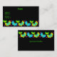 Cartões de visitas divertidos com borboletas azuis, amarelas e verdes.