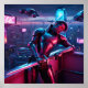 Neon Cyber Warrior Poster - Futurística Sci-Fi