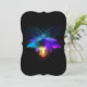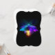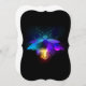 Voz mecânica, antiga, com lâmpada e asas finas brilha cor de laranja, roxo, turquesa sobre fundo preto. Estilo Steampunk.